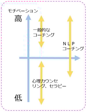 一般的なコーチングが、目標・目的を持つ人だけが対象であるのに対し、NLPコーチングは日常の悩みや、心のブレーキとなっているものを開放するなど、問題や課題を持つ人にも対応することができます。人間の五感、言語学、人間の中にあるプログラムに基づいたワークも必要に応じて活用します。